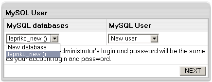 MySQL databases or create a new one to be used by mnoGoSearch: