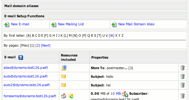 - [Prev] [1] [2] ... [Next] navigation links (appear if there are more than 10 mail resources on the maildomain)
