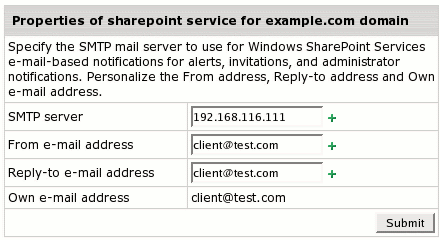 Besides, H-Sphere will need an e-mail address to register SharePoint Services on. It will also take e-mail address from your